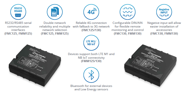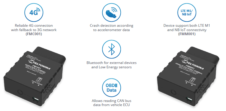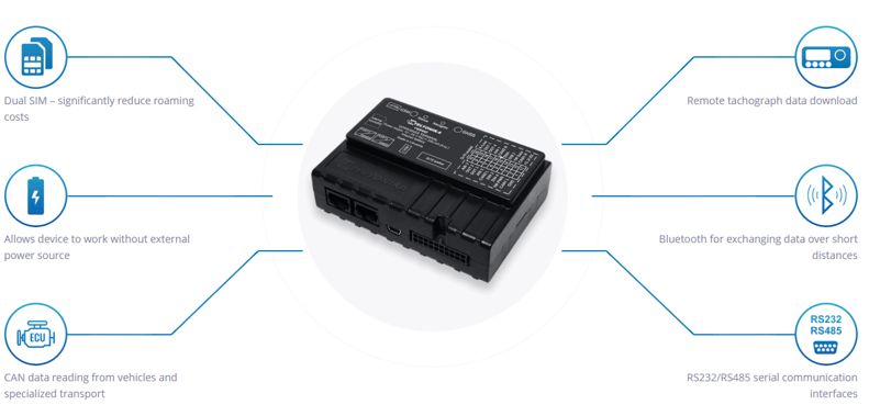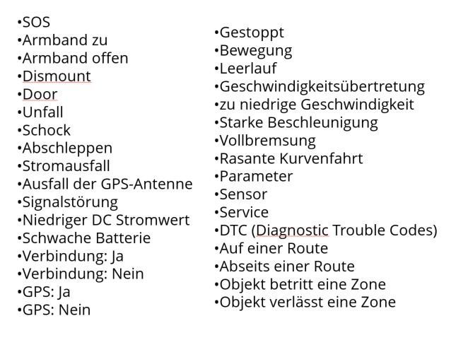 Hier ein Überblick der Geräte und Funktionen. Alle Geräte sind mittels SIM Karte online mit unserem Server verbunden und übertragen die Bewegungsdaten. Durch eigenen Akku ist das Gerät auch bei langen Stehzeiten aktiv. Sobald die Zündung aktiviert wird, beginnt das System zu übertragen oder aber der Standort verändert sich. Auch in diesem Fall überträgt der Tracker den Standort. Als Sicherheitsfeature können Sie die Funktion aktivieren, dass es einen Alarm gibt wenn die Stromversorgung gekappt wird.